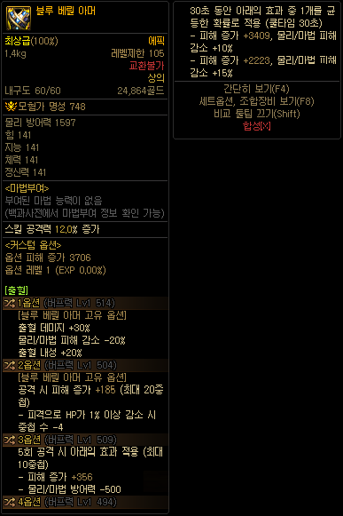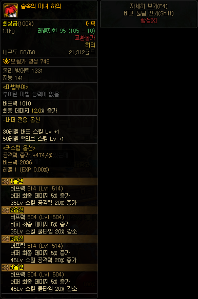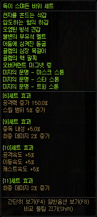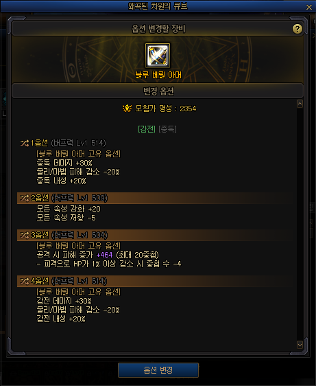 | 11 | 伤害增加+526 技能攻击力增加4% 技能MP消耗+100% 装备和技能的MP恢复效果减少30% | 攻击力增加+52.6%, 最终伤害增加4%, 技能MP消耗+100% |