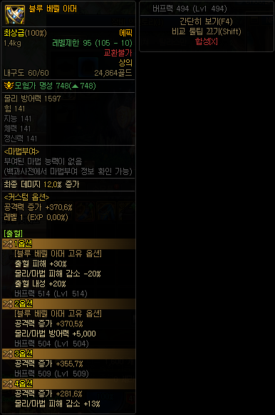 ㄴ 属性点可以根据角色所装备的110Lv史诗装备的总选项等级来获得。