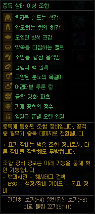 | 删除组合 → 更改设定项目 | * 通用 * 对象 * 中毒/流血/电击/烧伤状态异常 *烧伤/冰冻组合 *睡眠增益 *石化 增益 *MP消耗过多 *护盾 *法力护盾 *突然打击 *失能 *魔方消耗过多 *移动 *自我虚拟化 *技能范围 *基本技能 | 删除组合,添加集合 * 高贵救世主之路(缓冲) |